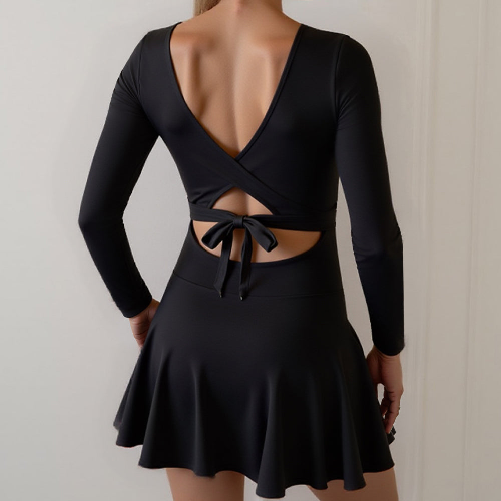 Women One piece Long Sleeve Hollow Out Surfing Suit Swimming Skirt